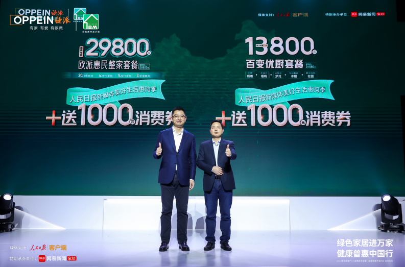 2023年2月,歐派敢為人先,開啟 “綠色家居進萬家 健康普惠中國行”惠民行動,重磅推出29800元惠民整家套餐/13800元王牌百變優廚套餐,引發行業震動。